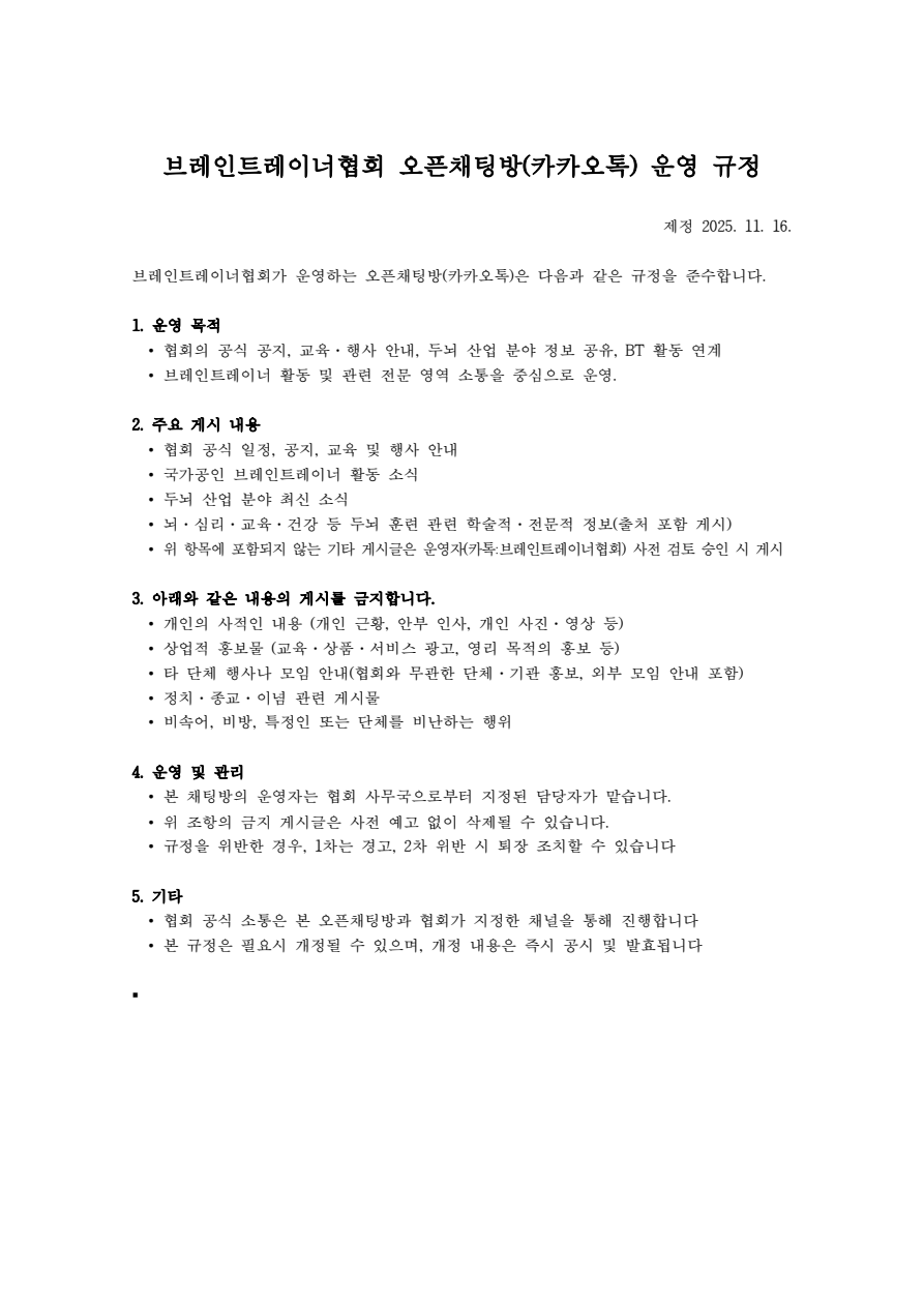 ºê·¹ÀÎÆ®·¹À̳ÊÇùȸ°¡ ¿î¿µÇÏ´Â ¿ÀÇÂäÆÃ¹æ(īī¿ÀÅå)ÀÇ ¿î¿µ ±ÔÁ¤À» ¾Æ·¡¿Í °°ÀÌ °øÁö ÇÕ´Ï´Ù.